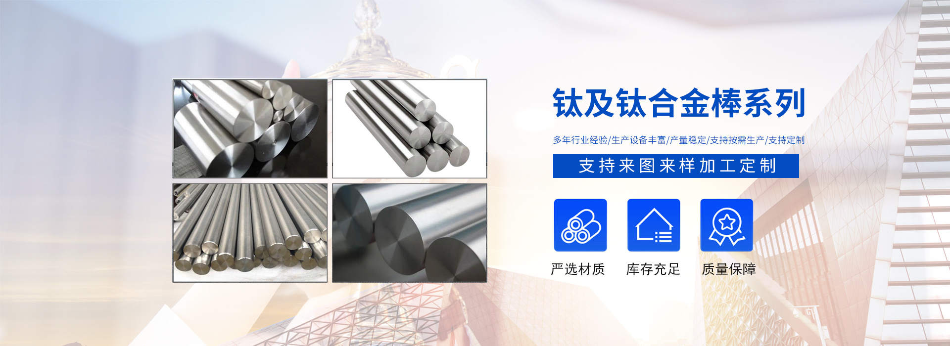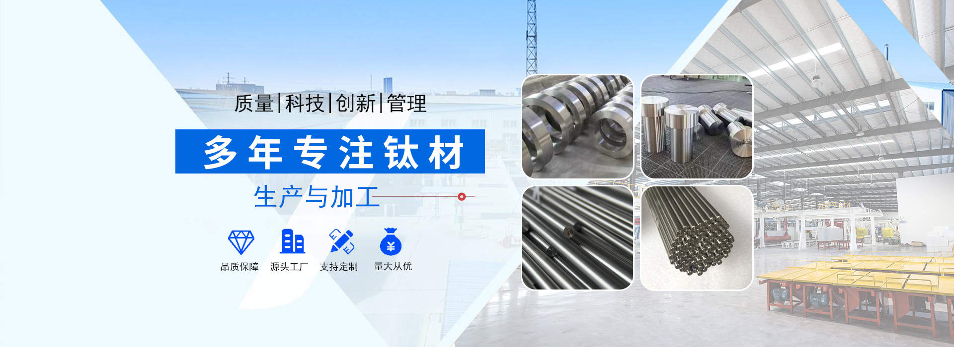 陜西辰軒鑫達金屬材料有限公司位于具有“中國鈦城”之稱的陜西寶雞高新技術開發(fā)區,公司依托“中國鈦城”的雄厚的行業資源,強大的有色金屬科研及制造實力,完整的有色金屬工業制造產業鏈,形成了一套完整的生產流程,公司主要從事有色金屬的加工,生產及銷售及工業及民用鈦、鎳、鉬及其他稀貴金屬材料的深加工研究生產及國際、國內貿易,集有色金屬材料銷售、產品設備制造及新產品開發(fā)為一體。主要以生產鈦材及其他金屬材料為主,主導產品有:鈦錠、鈦棒、鈦絲、鈦板、鈦法蘭等以及其他有色金屬材料:鋯板、鋯管、鋯棒、鋯鈀、鋯餅、鈮管、鈮棒、鉭板、鉭棒、鉭管等有色金屬。產品廣泛應用于化工、冶金、石油、紡織、醫藥、輕工、環(huán)保···